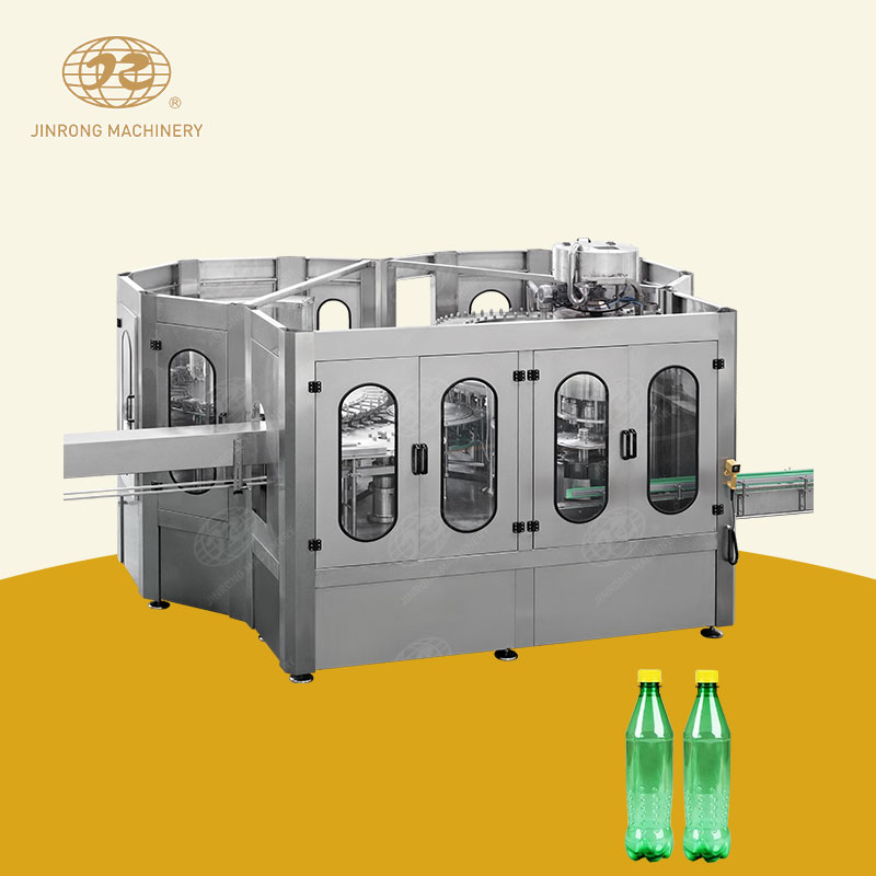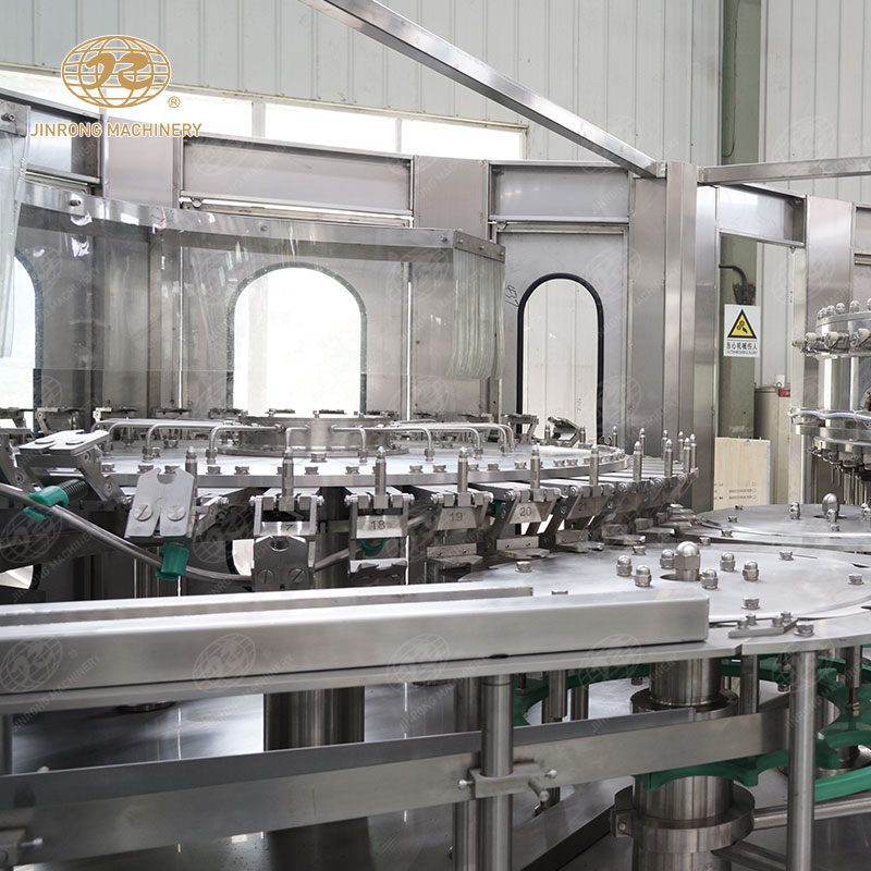 金榮機械生產的碳酸飲料灌裝機采用不銹鋼材料制成,具有結構合理、工藝先進、操作方便、適用范圍廣等特點,是中小型飲料廠家理想的生產流水線機組。