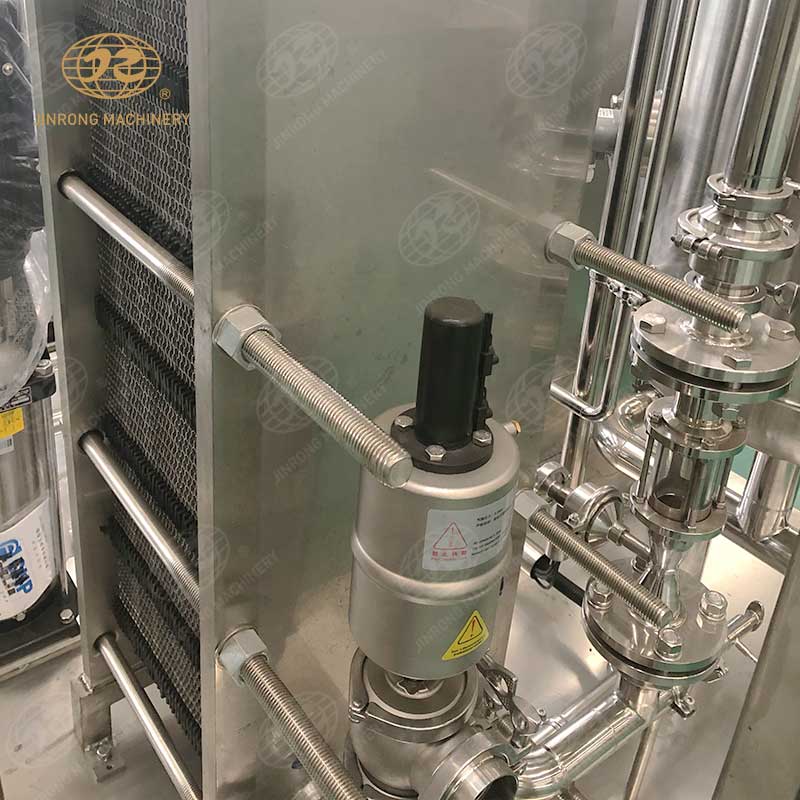 4. 混合機器采用板式換熱器進行冷卻。當飲料水和稀糖漿通過帶刻度的手動調節閥進入混合罐時,混合泵升壓后進入板式換熱器,充分混合飲料水和稀糖漿。同時,利用板式換熱器的固有特點,在另一側加冰水,不僅可以混合飲料水和細糖漿,還可以降低溫度,提高碳化效果。在進入之前,可以添加適當的二氧化碳,以獲得更好的糖,水和天然氣混合物。
